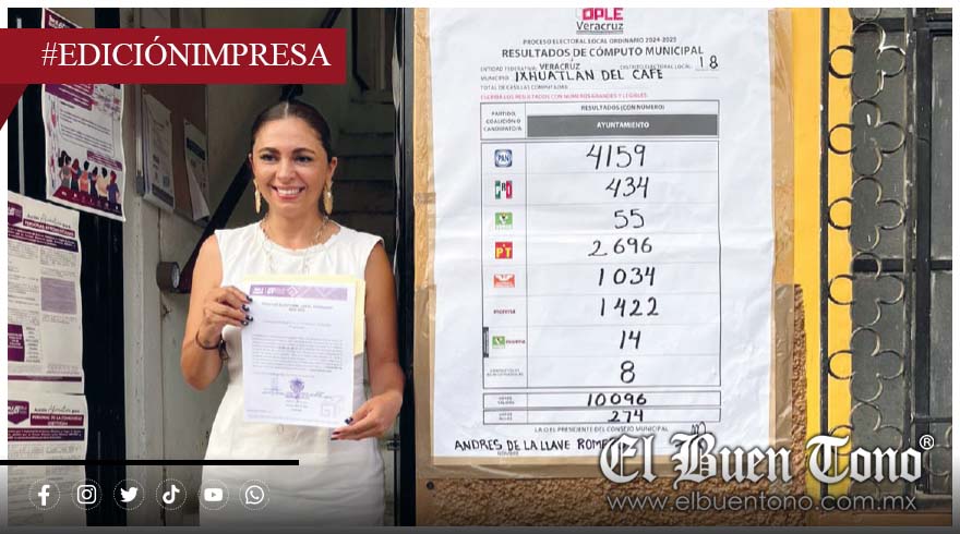 Ixhuatlán del Café.- Viridiana Bretón Feito recibió este miércoles en el Órgano Público Local Electoral de Ixhuatlán del Café, su constancia de mayoría que la acredita como ganadora de las elecciones municipales del pasado 1 de junio; la alcaldesa electa acudió en compañía de su planilla y simpatizantes.