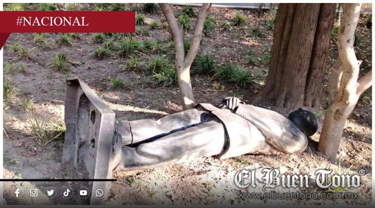 La estatua de Felipe Calderón Hinojosa sigue en el suelo cuatro meses después de ser derribada por un árbol en la Calzada de los Presidentes del Complejo Cultural Los Pinos. La base que sostenía la figura, así como la placa con su nombre, permanecen dañadas, mientras la escultura yace entre lodo, hojas secas y tierra.