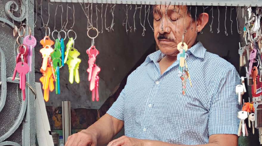 La duplicidad de llaves, componer candados y llaves, abrir puertas, carros, reparar chapas, son los principales trabajos que hace don Baruch todos los días, a quien ahora le ayuda su sobrino en este noble oficio.