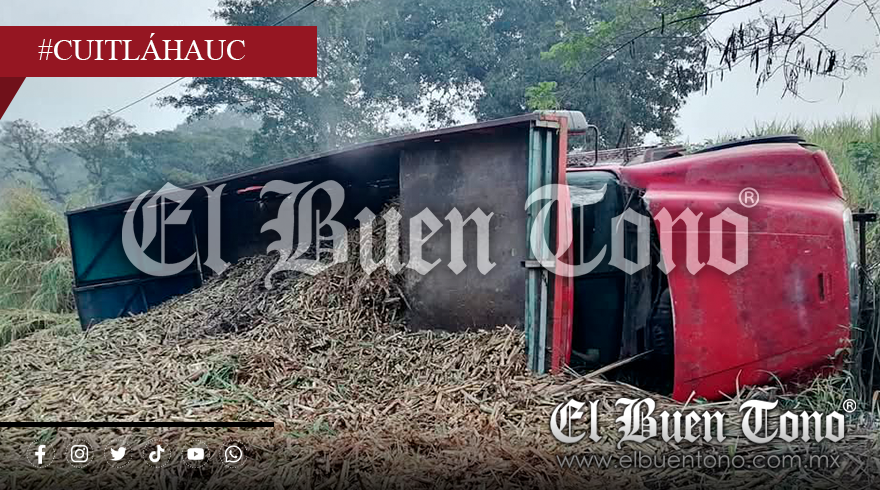 Cuitláhuac.- Un camión cargado con caña picada, volcó la mañana de este sábado a un costado de la carretera Yanga-Omealca, a la altura del puente Zapote.