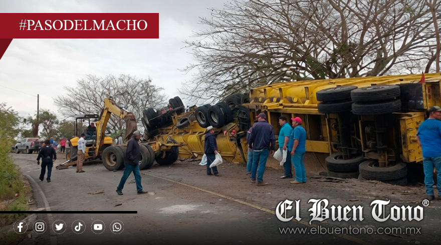 Paso del Macho, Ver. – Una tolva cargada de azúcar volcó la tarde de este martes en la curva antes de Loma del Nanche, sobre la carretera estatal Paso del Macho – Camarón de Tejeda.