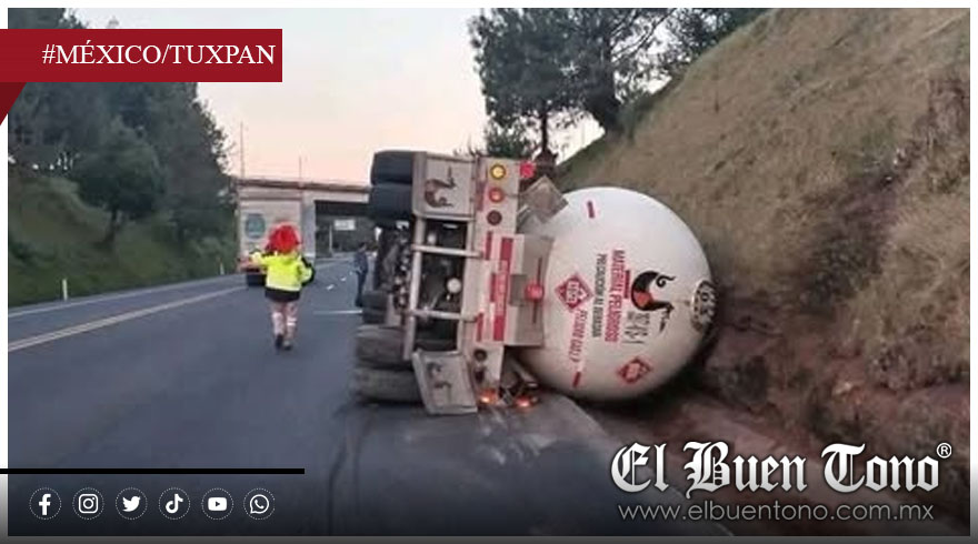 Nacional.- La mañana de este domingo se registró la volcadura de una pipa cargada con gas sobre la autopista México-Tuxpan, a la altura del kilómetro 123+500, muy cerca del entronque conocido como La Desviación, en los límites entre los estados de Puebla e Hidalgo.