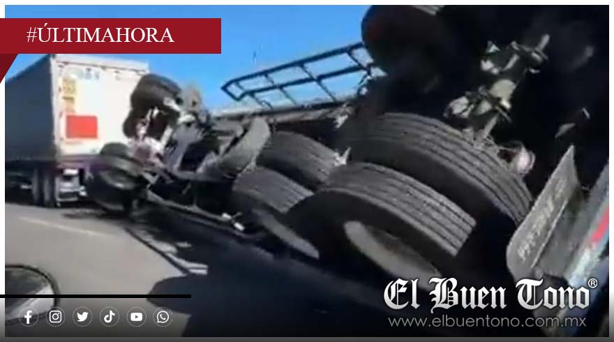 El percance ocurrió alrededor de las 09:35 horas, cuando el segundo remolque del vehículo se zafó y terminó volcado sobre la vialidad tras una maniobra errónea del conductor, de acuerdo con testigos.
