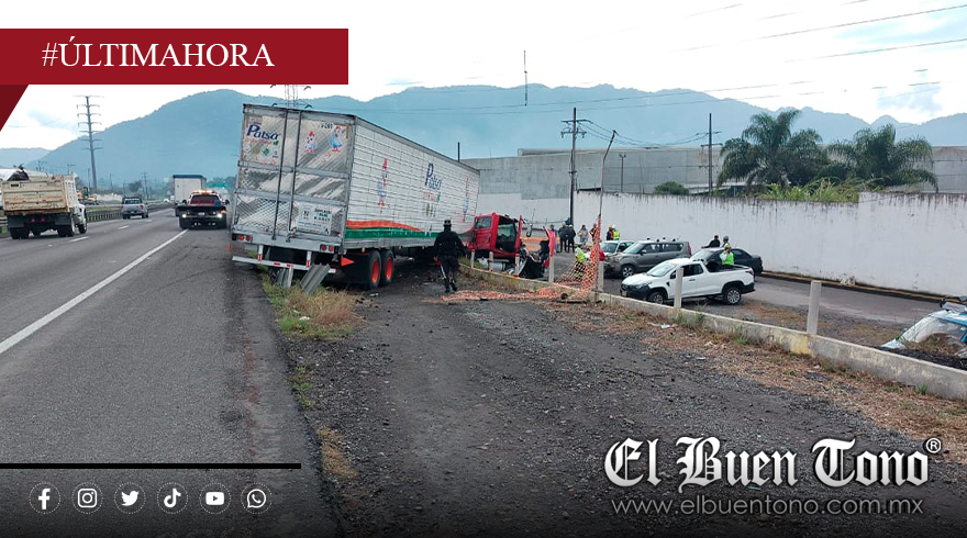 ORIZABA, Ver. — Orizaba, Ver., 24 de diciembre de 2025.– La mañana de este miércoles se registró un accidente vehicular sobre la autopista con dirección a Orizaba, a la altura del kilómetro 271, antes del trébol de Jalapilla, donde un tractocamión que remolcaba una caja seca perdió el control e impactó contra 3 vehículos que se encontraban
