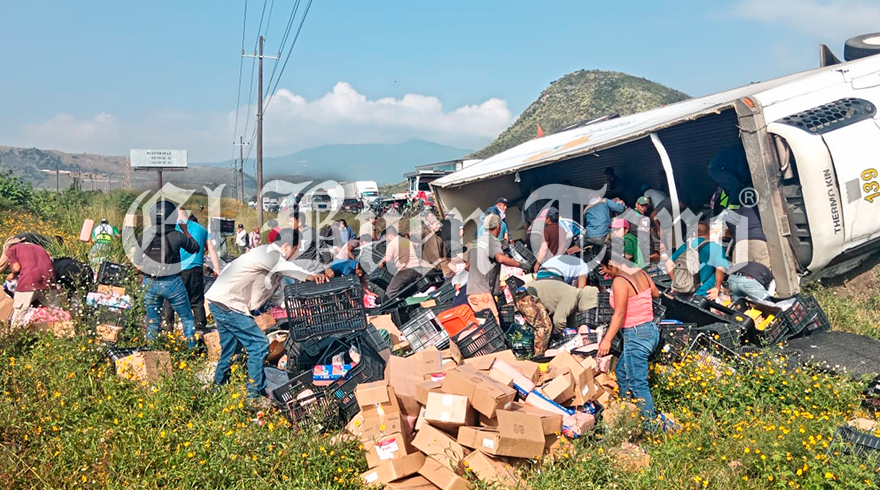 Durante la volcadura no hubo reporte de personas lesionadas, solo daños materiales, pero si el robo de la mercancía por pobladores y automovilistas.