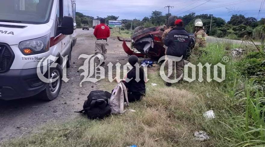 Tierra Blanca. – Tres personas que viajaban a bordo de un vehículo de la marca KIA resultaron lesionadas luego de que la unidad volcara, debido a que el conductor perdió el control, presumiblemente por exceso de velocidad, en el kilómetro 25+200 de la carretera federal Tinaja-Cd. Alemán, en el tramo Tierra Blanca del Amate.