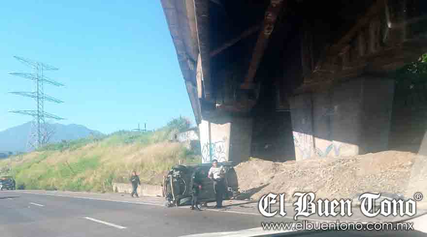 Orizaba.- El exceso de velocidad y falta de precaución causó que un automóvil particular se volcara la mañana de ayer domingo en la autopista Orizaba-Córdoba, dejando daños materiales, a la altura del 277. Acudieron oficiales de la Guardia Nacional para tomar conocimiento, ordenar el retiro de la unidad y llevar a cabo su dictamen de causalidad.