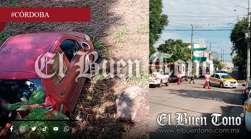 Córdoba, Ver.– Esta mañana, una volcadura registrada en la avenida 44 y calle 6, colonia Los Carriles, dejó dos personas lesionadas.