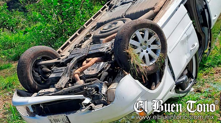 La volcadura se registró alrededor de las 11:00 horas, cuando la camioneta circulaba a velocidad inmoderada en dicho tramo carretero con sus dos ocupantes.