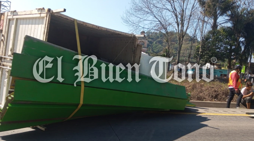 Córdoba, Ver.- Una camioneta que transportaba estructuras metálicas se volcó durante la mañana de este domingo en la autopista Córdoba-Orizaba, a la altura del kilómetro 290.
