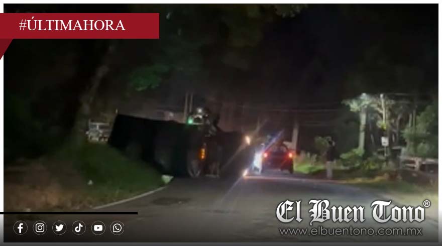 Fortín, Ver.- Un camión se volcó la noche de este sábado en la curva de Monte Salas, sobre la carretera federal Fortín–Chocamán.