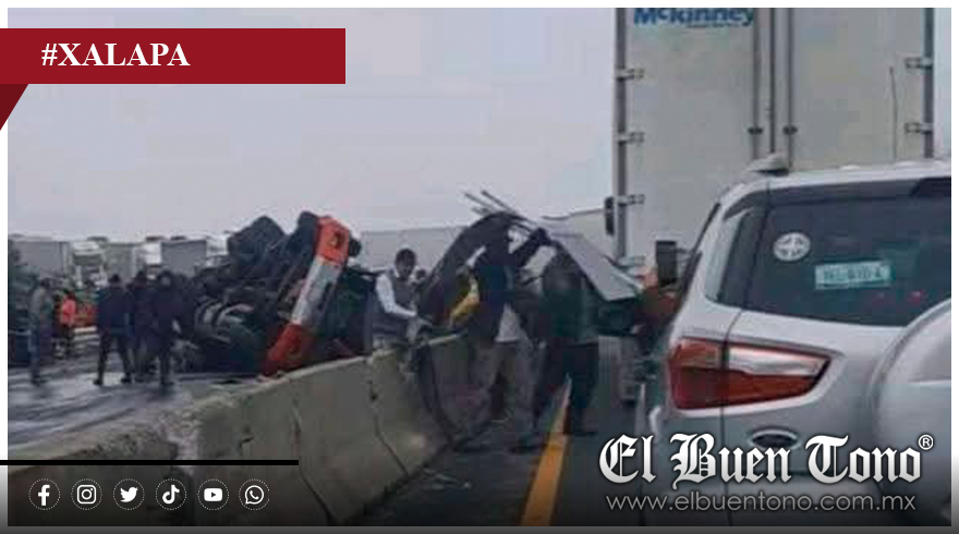 Xalapa.- Un tráiler que transportaba material de acero volcó esta mañana en el kilómetro 140 de la autopista Perote-Xalapa, dejando un saldo de dos hombres fallecidos. Según los primeros reportes, el conductor perdió el control del vehículo, lo que provocó el fatal accidente.