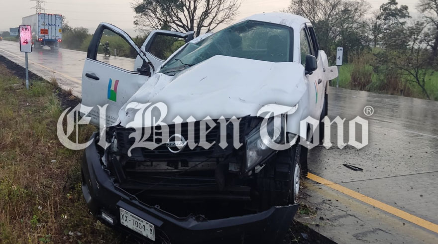 Amatlan.- Dos personas resultaron lesionadas durante la volcadura de una camioneta Nissan, registrada esta tarde en la autopista Córdoba-Veracruz, a la altura de la comunidad Rancho Trejo. El accidente se registró debido a la velocidad inmoderada y al piso mojado por la tormenta eléctrica que se registró. Ambas personas recibieron los primeros auxilios por parte de Paramédicos de Caminos y Puentes Federales. Oficiales de la Guardia Nacional.