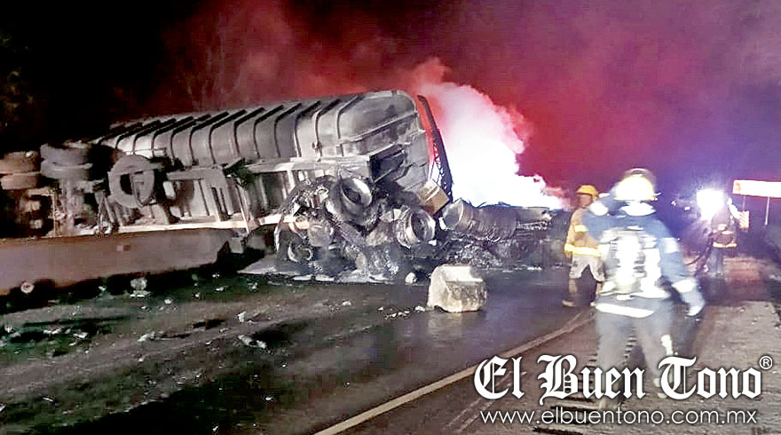 Una camioneta que subía hacia Rancho Trejo, en la que viajaba la familia, se impactó contra el tráiler en llamas, pero lograron salir heridos y evitar morir calcinados.