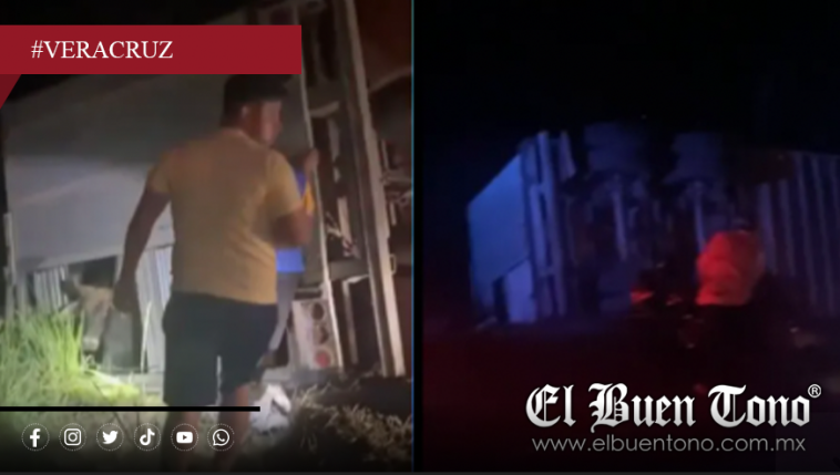 Tecolapilla, Ver.- Un tráiler cargado con ganado volcó este lunes en la carretera federal 180, en el tramo Lerdo de Tejada-Alvarado, y lo que debería haber sido un accidente lamentable se convirtió en un ejemplo de la impunidad y la falta de control en la región: algunos habitantes de la zona aprovecharon el percance para robar parte del ganado antes de que llegaran las autoridades.