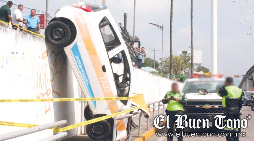 Agentes de Tránsito Municipal y Protección Civil acordonaron el área debido al peligro de que el taxi pudiera caer completamente a la vialidad.
