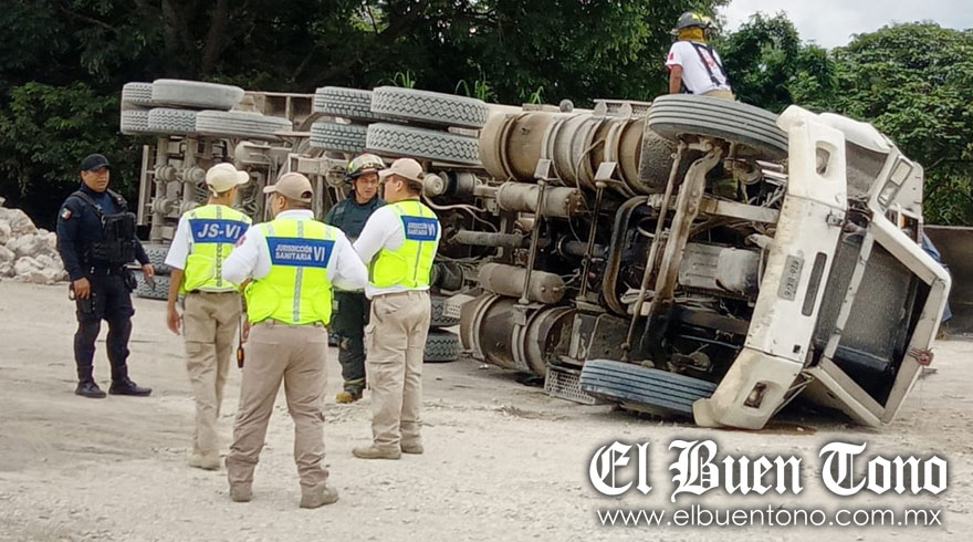 Córdoba, Ver.- Una tolva que transportaba piedra, se volcó esta tarde en un terreno ubicado a orilla de bulevar Tratados de Córdoba, debido al exceso de peso. No hubo personas lesionadas, pero si la movilización de paramedicos del grupo Samuv, así como de bomberos, Protección Civil y autoridades policíacas.