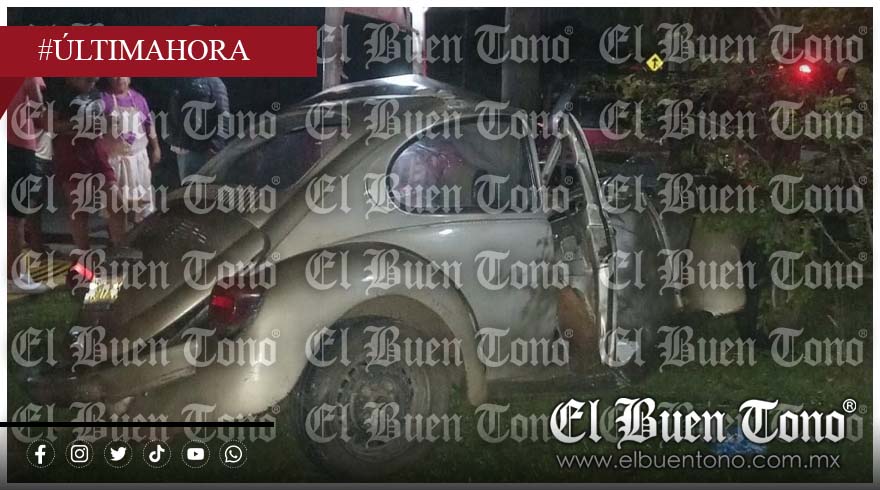 Amatlán.- Un vochito terminó desbaratado al volcar sobre la carretera Córdoba-Atoyac y quedar dentro de un jardín, afuera del parque industrial de Paraje Nuevo.