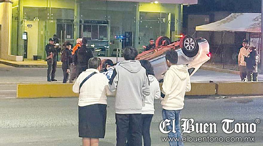 RÍO BLANCO.- Un automóvil gris volcó durante la noche del sábado sobre el Camino Nacional, en dirección a la ciudad de Orizaba. El accidente ocurrió alrededor de las 23:30 horas, cuando el conductor perdió el control del vehículo debido a la velocidad excesiva, provocando que este terminara con las llantas hacia arriba.