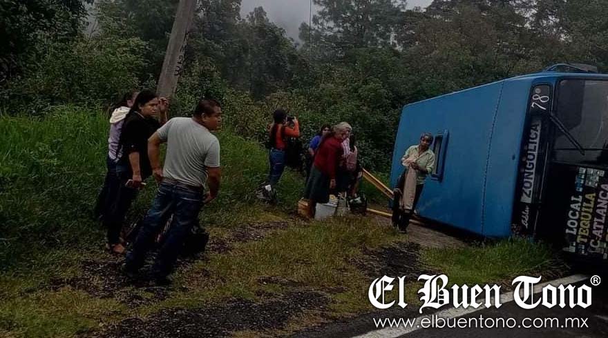 Los Reyes. – Un autobús que cubre la ruta Zongolica-Atlanca, marcado con el número 78, volcó la tarde de este domingo en la comunidad de Atlanca, municipio de Los Reyes. Personal de Tequila y Zongolica brindó apoyo a 10 personas que resultaron lesionadas y fueron trasladadas a un hospital de la zona.