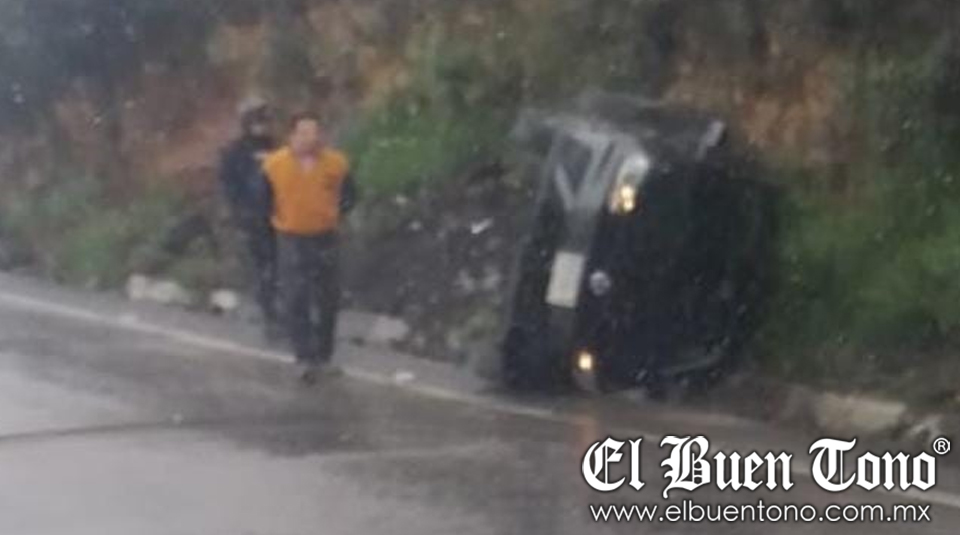 Maltrata, Ver.- Un automóvil compacto se volcó durante la mañana de este jueves en la autopista Esperanza-Maltrata, debido al exceso de velocidad y el piso mojado.