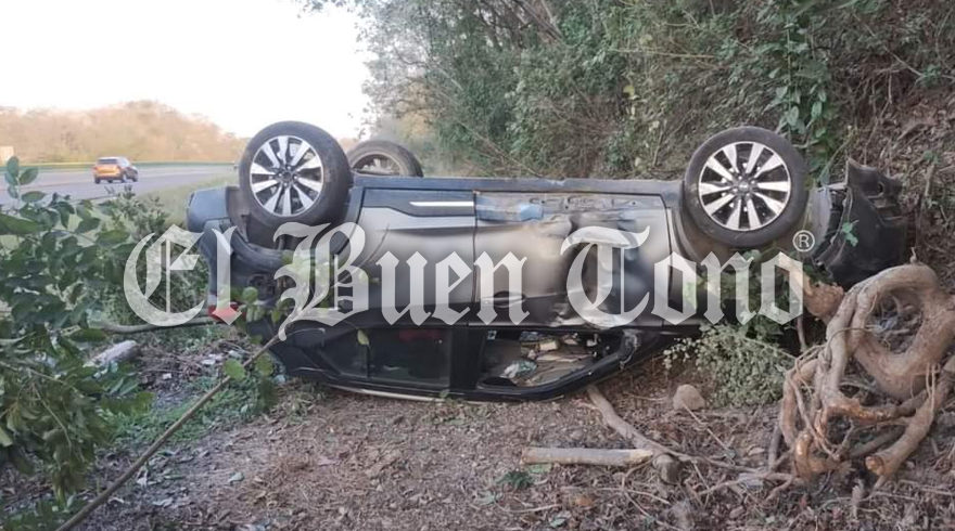Carrillo Puerto. – Un automóvil quedó llantas arriba, al chocar contra un cerro junto a la autopista Córdoba-Veracruz, a la altura de la localidad de Cerro Alto.