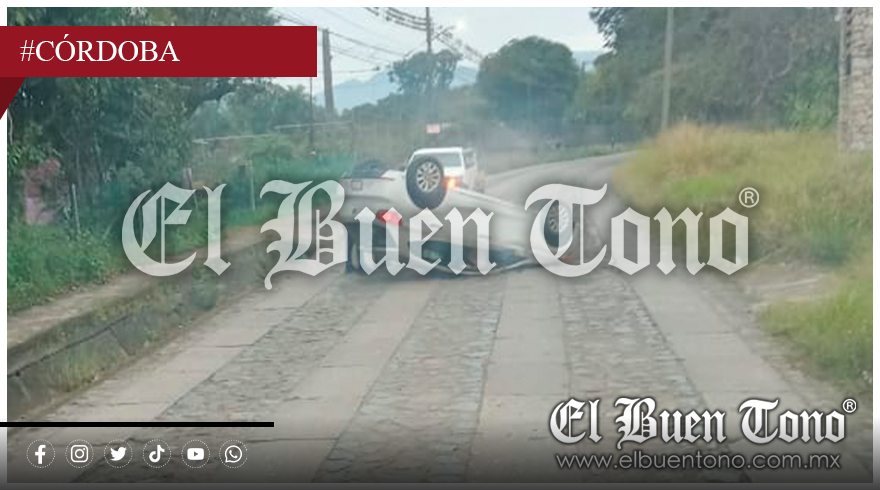 Córdoba.— El exceso de velocidad y la falta de precaución provocaron que un automóvil terminara volcado la mañana de este jueves en la Calzada Morelos.