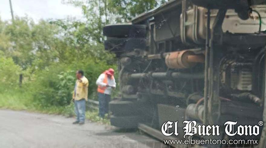 Zongolica.- El conductor de un camión cargado con cervezas perdió el control de este y volcó sobre la carretera federal a la altura de el municipio de Tequila – Los Reyes.