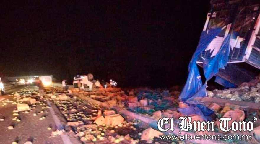 Puebla, México – Un tráiler cargado con chayote volcó esta mañana en el kilómetro 178+800 de la autopista Puebla-Córdoba, en dirección a la ciudad de Puebla, entre los municipios de Tecamachalco y Acatzingo. El incidente ocurrió alrededor de las 8:00 AM, provocando la obstrucción parcial de la vía.