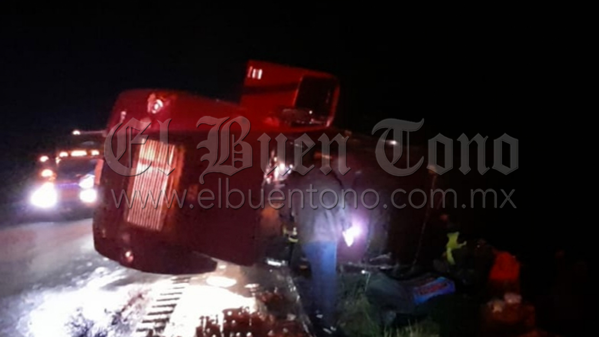 Maltrata.- Un camión tipo torton cargado con varias toneladas de frutas y legumbres, volcó de forma aparatosa cuando circulaba sobre el kilómetro 239 de la autopista Puebla-Córdoba.