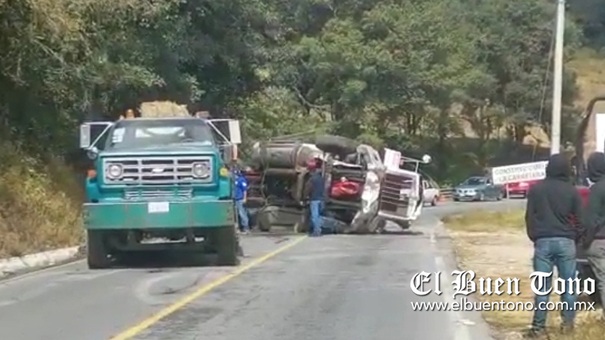 A la altura del tramo La Jarochita-Puerto del Aire, el operador perdió el control del volante y volcó, afortunadamente el chofer logró salir del camión.