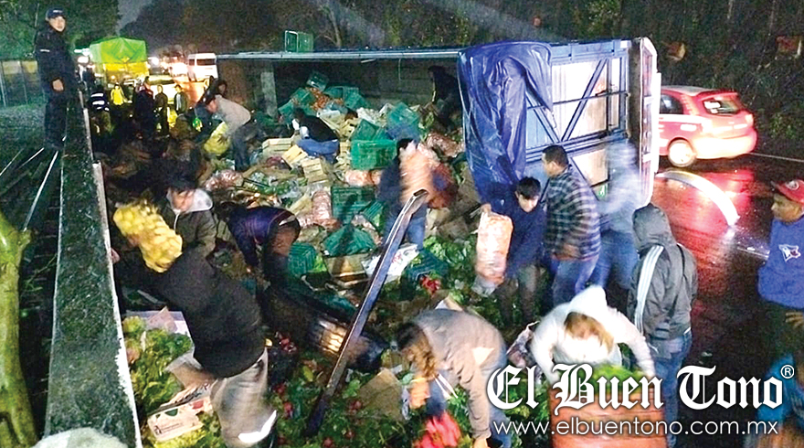 Huiloapan.- Una vez más, la gente ratera hizo de la suyas y se robó toneladas de frutas y verduras que eran transportados en un camión tipo torton, que volcó cuando circulaba por la autopista Puebla-Córdoba, a la altura del destacamento de la Guardia Nacional.