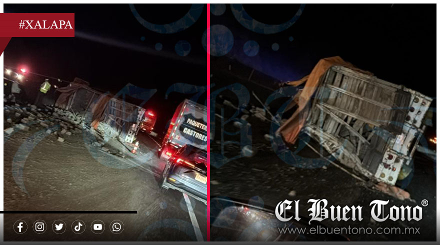 Xalapa, Ver.- Un camión de carga volcó a la altura de la caseta de Las Vigas, en la salida de la carretera federal Xalapa-Perote, lo que provocó afectaciones a la circulación en la zona.