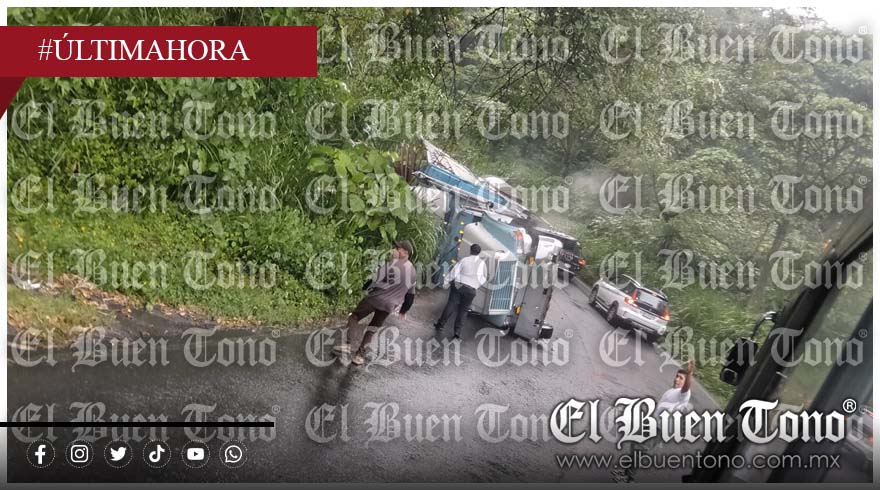 Chocamán.- Un camión tipo Torton volcó la tarde de este sábado sobre la carretera federal Fortín-Huatusco, a la altura de la barranca de Chocamán.