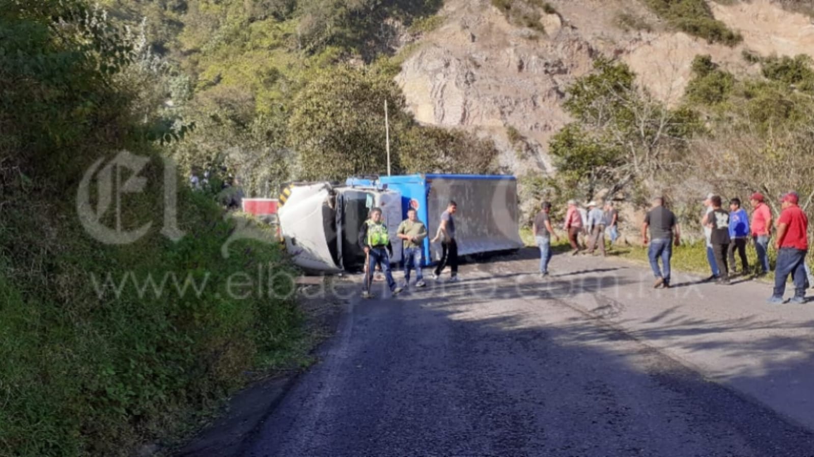 Coscomatepec. – Un camión de la empresa Pepsi, volcó sobre la carretera que comunica a la localidad de Tetelcingo, al quedarse sin frenos esta tarde cuando se dirigía hacia Coscomatepec.