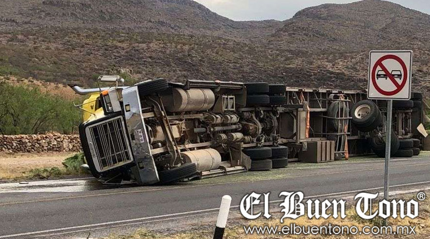 Chihuahua.- Un tracto camión y su caja volcaron de costado izquierdo en la carretera Libre Chihuahua-Juárez, a la altura del kilómetro 6, debido al exceso de peso de la carga. El incidente ocurrió cuando el camión, cargado con cubos de chatarra destinados para su fundición, perdió estabilidad sobre la vía.
