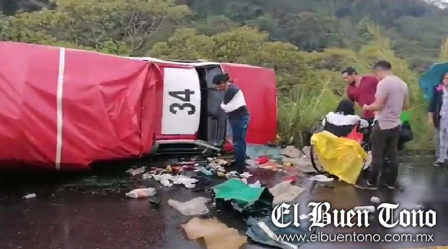 Tomatlán.- Trece personas lesionadas, daños materiales movilización de los servicios de emergencia así como el cierre parcial de la circulación vial en la carretera federal Fortín-Huatusco fue el resultado de una fuerte colisión en la cual estuvo involucrada una camioneta del servicio mixto rural número económico 35 así como una Nissan Platinum.