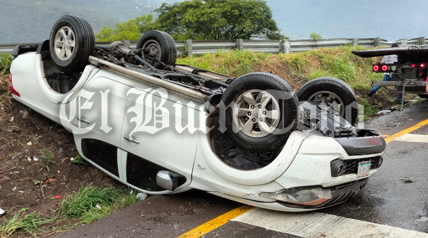 De acuerdo a los primeros peritajes, el vehículo derrapó sobre el piso mojado y quedó varada llantas arriba sobre el carril de baja velocidad, aunque por increíble que parezca su conductor pudo salir por su propio pie de la cabina.
