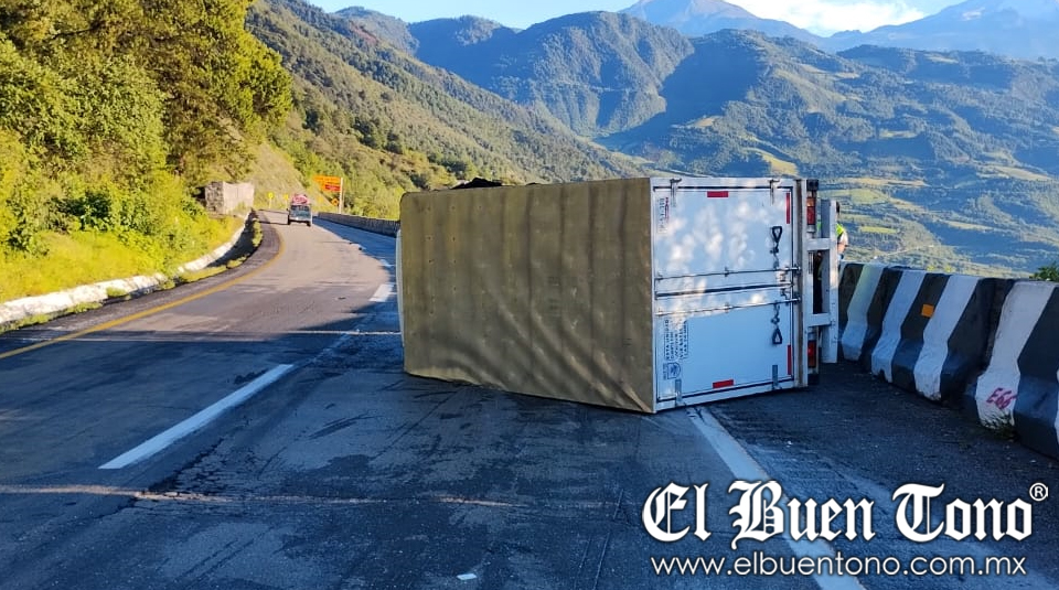 Maltrata.- La volcadura de una camioneta de carga se registró la mañana de este miércoles en el kilómetro 231, de la autopista Puebla-Córdoba.