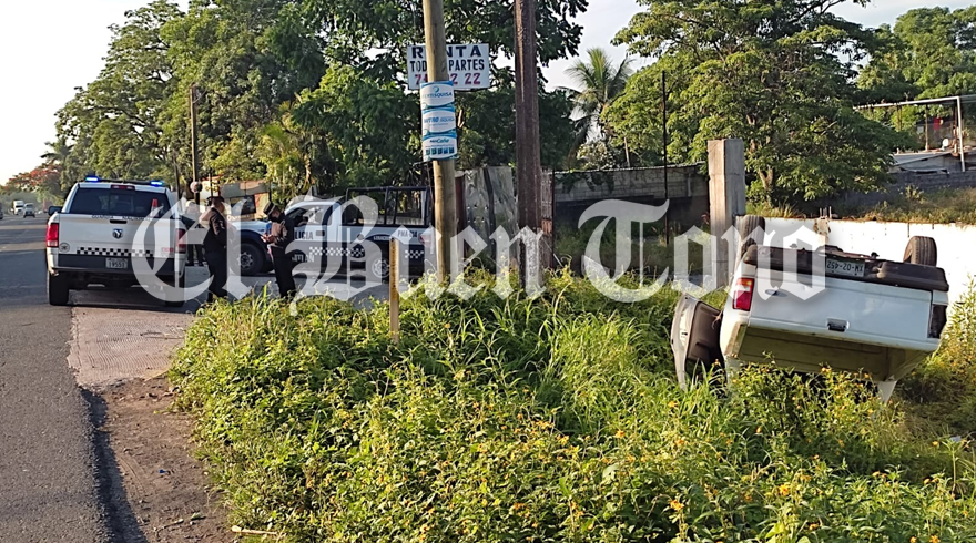 El percance se registró a la altura de la parada de La Concha, cuando el conductor de la camioneta perdió el control, para salir de la carretera derrapar unos metros e impactarse contra una barda, para posteriormente quedar volcada.