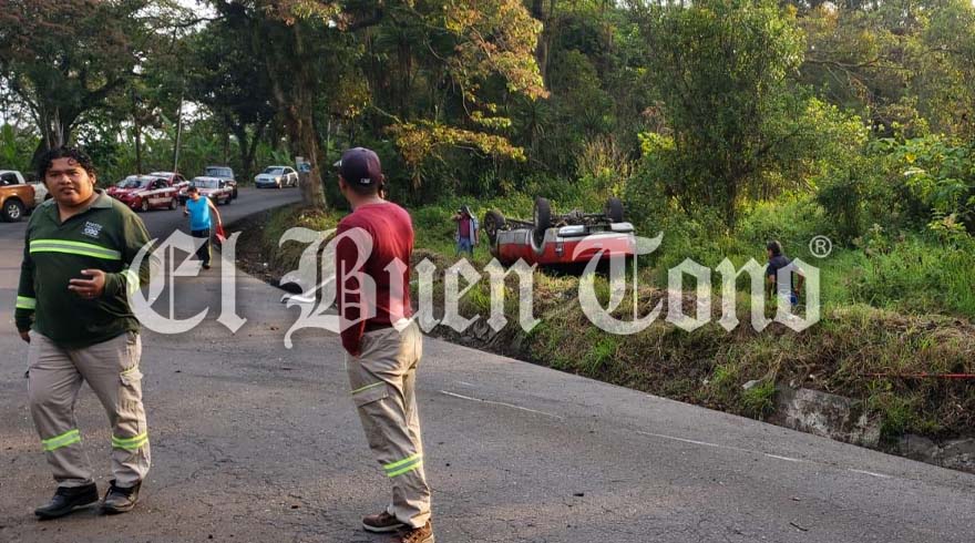 Fortín. – Una camioneta terminó volcada fuera de la carretera federal Fortín-Huatusco, en la entrada a Monte Salas. Su conductor resultó herido y fue atendido por paramédicos de la corporación Samuv de Fortín.
