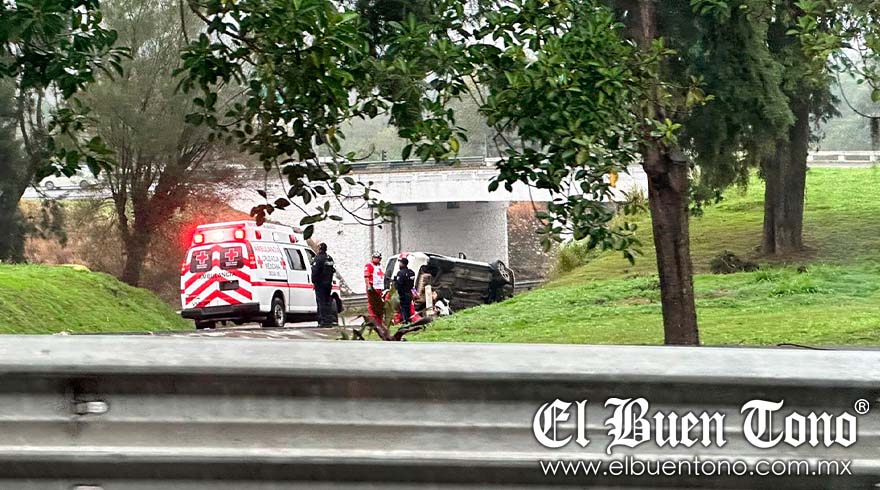 Al momento del accidente, la persona que manejaba dicha camioneta, color blanco, perdió el control y quedó volcada hacia su lado izquierdo, obstruyendo la circulación hasta su retiro.