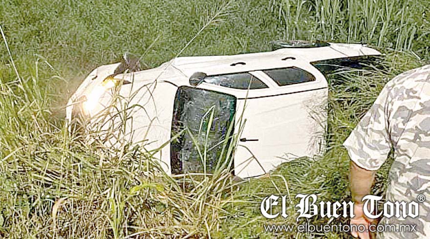 Cuitláhuac.- Una camioneta terminó en un canal de riego después de que el conductor perdiera el control y volcara a un costado de la carretera federal Córdoba-Veracruz.