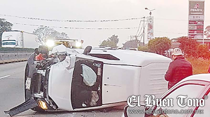 amatlán.- Una camioneta se volcó la mañana de ayer viernes en el kilómetro 300 de la autopista Córdoba-Veracruz, debido a la velocidad inmoderada y el piso mojado por la brisa.