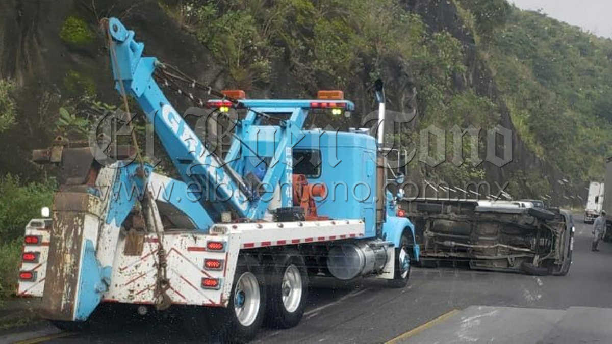 Maltrata.- La volcadura de una camioneta de carga pasada, se registró la mañana de este jueves en el kilómetro 245 de la autopista Puebla-Córdoba, luego de que su conductor perdiera el control del volante.