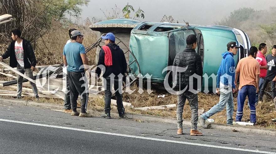 Maltrata.- Una camioneta quedó volcada a un costado de la autopista Puebla – Córdoba justo en la la última curva al descender de las cumbres de Maltrata, los campesinos que viajaban a bordo de la unidad resultaron con algunas contusiones pero no de gravedad.