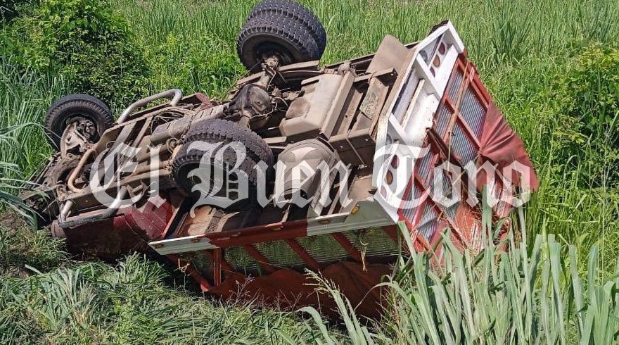 Cuitláhuac.- Una camioneta de tres toneladas y media término volcada y fuera del camino, luego de que su conductor perdiera el control aparentemente por una falla mecánica cuando circulaba sobre el kilómetro 30 de la carretera federal Córdoba-La Tinaja a la altura de la comunidad de El Nanche, lo cual generó la movilización de grupos de auxilio así como también de elementos de la Policía Municipal y Guardia Nacional que llegaron para tomar conocimiento.