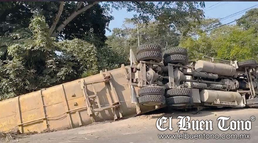 Cosolapa.- Un camión cañero con doble remolque se volcó la mañana de ayer lunes en la carretera estatal, a la altura del lugar conocido como El Nacimiento.