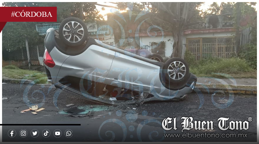 Córdoba, Ver.- Un vehículo particular se volcó durante la mañana de este domingo en la exvía del Huatusquito entre las avenidas 7 y 9, debido a la velocidad inmoderada y la falta de señalamientos.