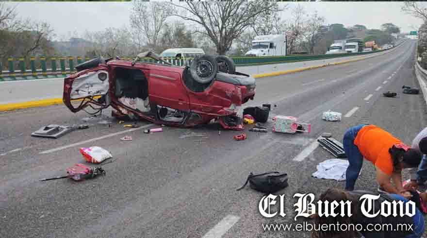 El aparatoso accidente se registró luego de que el conductor del vehículo Dodge-Actitud, con placas del Estado de Puebla, el cual viajaba acompañado de su familia, ya que se dirigían a Villahermosa Tabasco, al llegar al kilómetro 45, perdió el control del volante, aparentemente por una falla mecánica y el exceso de velocidad con el que se desplazaba, provocando que se impactaran contra el muro de contención y terminaran volcados.